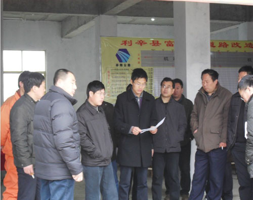 利辛县富强路道路改造工程的开工受到利辛县委、县政府、县建委等各界领导的高度重视。县委常委纪检委戴书记、县建委刘主任、杨主任多次到现场查看工程进度,协调外部环境,指导施工进展,特别是在元宵节当天代表县领导对工地进行节日慰问。