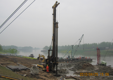 2010年7月23日,新东大道01标颍河大桥,水中6#墩最后一根钻孔灌注桩浇筑结束,标志着全桥桩基础全部完成。颍河大桥全长576m、宽22m,下部基础共108根桩,其中桥台桩基φ1.5m,桥墩桩基φ1.8m。为加快施工进度,2010年4月1日钻孔开始,项目部就投入了旋挖钻机1台,回旋钻机5台,并且克服了1#墩老河床煤渣回填造成护筒漏水,5#、6#水中墩不良地质造成穿孔等不利因素,终于顺利完成,经省公路监理公司检测中心小应变检测,北岸桩基全部合格。