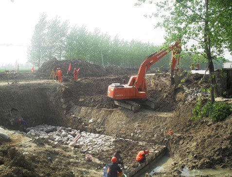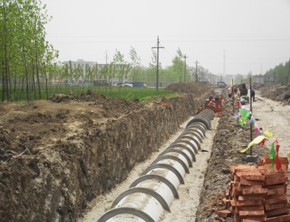 在雨水管道沟槽及盖板涵基坑的开挖过程中,发现多处垃圾坑,为了保证施工质量,增加施工机械,彻底清除垃圾土后采用碎石分层回填后报验坑槽,进行下道工序的施工。