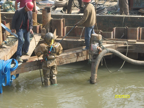 潜水员处理5#墩穿孔