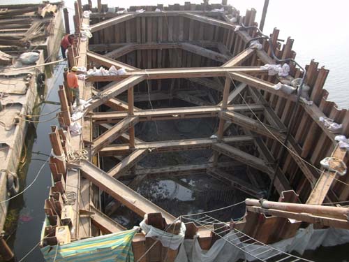 桥梁完成2#-3#墩现浇箱梁钢筋绑扎、4#墩0#块支架预压、5#墩钢板桩围堰穿孔处理,6#墩承台、8#墩立柱下部砼浇筑。