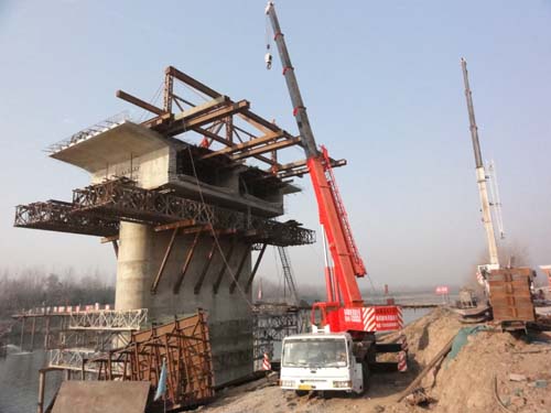 4#墩正在安装三角挂篮