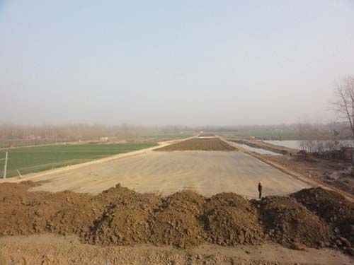 2、起点处110千伏高压线尚未抬高,影响路基填筑;路灯基座未迁移、过路电缆未下埋。