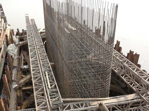 5#墩墩身下层钢筋已绑扎完成