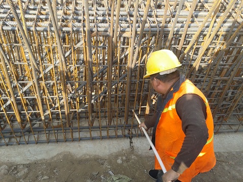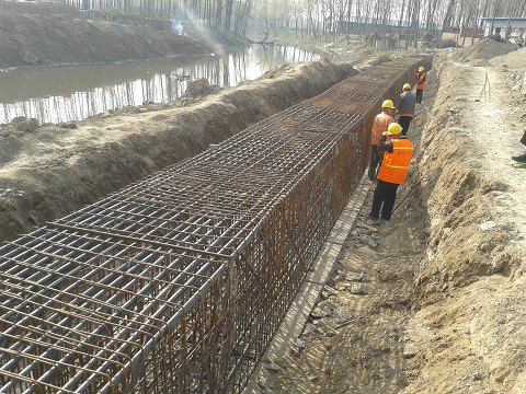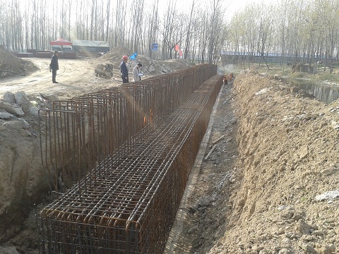 4月3日,界首市东环线曹田沟桥1#台盖梁钢筋已绑扎完毕,并提请报验。监理人员在现场对比图纸进行了钢筋绑扎检验,经检验合格,获准进入下一步支模工序。桥梁施工人员目前正在进行支模前清底工作,0#台盖梁钢筋绑扎工作正在进行。