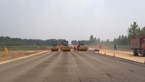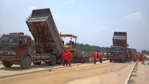 界首市东部新农村道路建设工程02标设计底基层为一层18cm厚低剂量水泥稳定碎石,基层为两层18cm厚水泥稳定碎石,试验段摊铺成功后,项目部将紧密组织水稳施工,争取早日完工。