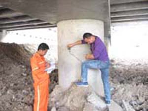 随后检测小组来到了我标K185+895八十里店桥、K189+315杨桥,对完工的立柱和盖梁进行了回弹强度检测和击实数据统计。检测小组对我部的立柱小结构的实体强度和完整性给予了高度评价。同时他提出要求:要不断加强生产管理,科学施工,做到各分项、各工序、各工种能够严格按照要求进行施工生产,要完善自检、复检制度。