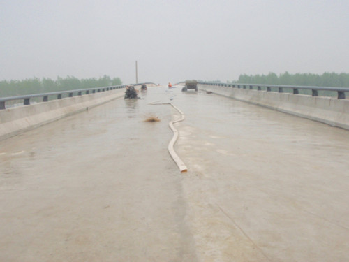 茨淮新河大桥桥面铺装施工报道 5月16日下午,在项目部管理人员和现场施工人员的一致努力下,为期10天的C40防水混凝土桥面铺装施工顺利结束。