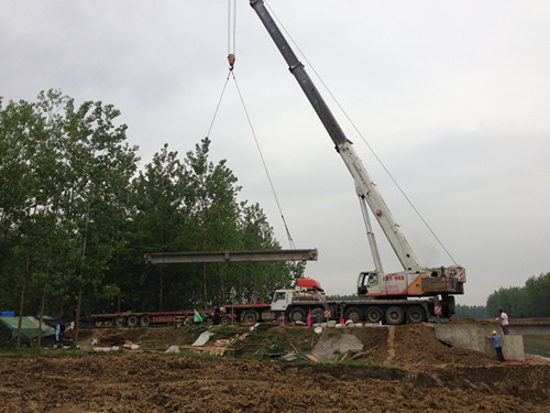 阜南县2013年农村公路危桥改造加固工程01标,由我公司中标,本标段包含三座中桥,合同金额418万余元。在公司各级领导的大力支持下,经过项目部全体人员努力,按照计划工期安排于5月6日完成三个桥的下部结构,5月30日完成全部49片T梁安装,主体工程顺利完成。在阜南县交通运输局组织的4-5月份10个标段综合评比中,我标段获得第一名,受到业主表彰,并给予物资奖励,我部将继续努力,狠抓安全、严管质量,按进度计划完成余下工程。