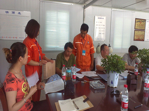 在项目部会议室王站长组织召开会议,业主、监理单位、施工单位相关负责人参加会议。会议中王站长对此次检查内容做简单安排,要求项目部针对汛期做好安全工作,对特种设备做好维修保养,开展的演练要制定方案落实有效。从根本上将安全工作做好。
