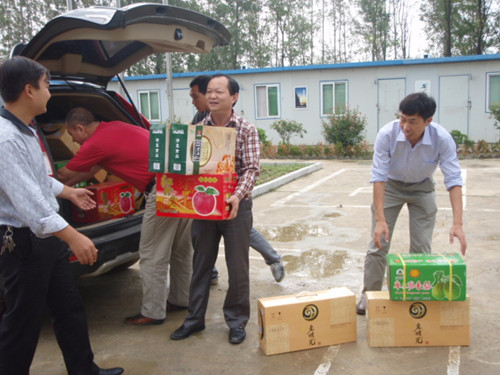 注:现场慰问中。