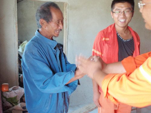 “十·一”国庆节期间,在这党和人民齐欢度的时节,为表示对冉庙乡老党员崇高的致敬茨淮新河大桥项目部带去了节日的关怀。 这是一位年迈的老党员,为共产主义事业奋斗终身,一辈子积善积德。项目部施工期间,老党员给予了他作为一名党员所能给予的支持和帮助。人员拥堵阻碍施工时,他利用扩音器帮助疏散、疏导村民;桥梁北岸施工时,他积极主动地协助项目部对破损的临时便道进行修补。 临别之时,老党员饱含深情的将我们送出家门,带着他的“老朋友”扩音器向村里邻居宣传我们的关怀和祝愿。为我们的祖国拥有这样一位老党员致以崇高的敬意。