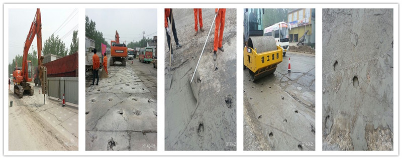 镐头破碎是本工程设计文件中老路处理方式之一,适用于穿越村镇路段。其主要原理是采用镐头机每50cm打一个洞,将水泥混凝土路面碎裂,然后在其表面摊铺3cm厚的m20砂浆,采用振动压路机进行振动碾压,通过振动碾压作用来消除脱空效应,然后洒布封层油,将表面破碎的颗粒进行稳定,表面层形成一个类似于沥青稳定碎石的结构,然后加铺水稳。