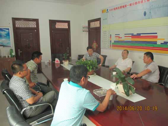 2014年6月20日,集团公司董事长唐谦、总经理韩恒忠、顺鑫劳务公司经理张春喜,莅临我公司承建的S307涡阳至蒙城段一级公路改建工程项目,在项目办主任王永、副主任庞鑫,项目总监达志,项目负责人刘波的陪同下视察S307施工现场。