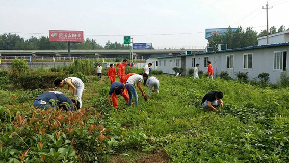 大家听到消息后,纷纷踊跃参加,早晨6点半,大家迎着初升的太阳,满身干劲的锄草,虽然汗流浃背,但每个人都乐在其中,职工们分工明确、互帮互助,共同打造一个绿色纯天然菜园。