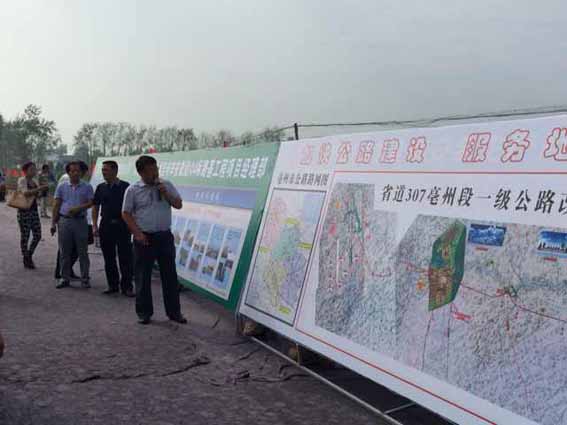 8月11日亳州市交通重点项目资金调度会在S307项目召开,亳州市市长李军、市交通局局长高川、公路局局长刘健及各县分管县长参加了会议。