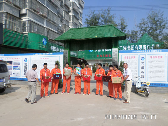 在中秋佳节来临之际,集团公司工会冯主席带队于9月5日到太和县国泰路道路及附属物工程项目部进行慰问。冯主席一行带着公司领导的关怀,给项目部送来了月饼、白砂糖、绿豆等慰问品。