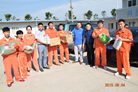 2015年8月4日上午,集团公司董事长唐谦,总经理韩恒忠,副总经理李超,工会主席冯贺等带着夏季防暑降温慰问品到我标段看望慰问奋战在一线的广大职工。