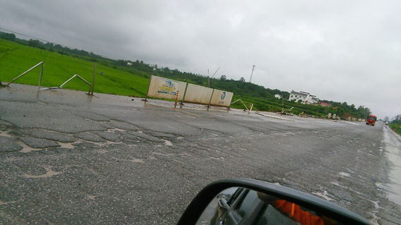 受今年第13号台风“苏迪罗”影响,8月9日晚,六安地区普降暴雨、大暴雨,突如其来的强降雨给S351项目部标段部分道路施工现场、桥梁施工现场等基础设施造成严重损失,其中道路安全围挡设施受灾较为严重,在S351道路两旁被刮倒的安全围挡设施东倒西歪,占据部分路面影响交通安全。
