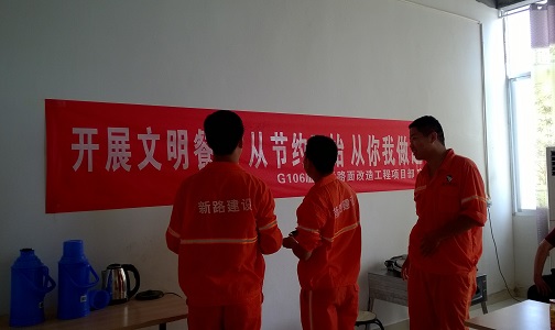 以“开展文明餐桌,从节约开始,从你我做起”为主题,当日中午12点活动开始。大家首先依次在写着主题的横幅上签字表明自己自愿参加此活动,愿从自己做起,创造一个文明的餐桌,文明的就餐环境。签字结束后,大家一起排队买饭。吃多少打多少,宁愿不够再加,不能把饭剩下。吃饭时文明守礼,不吵闹不喧哗,营造了和谐文明的用餐文化。