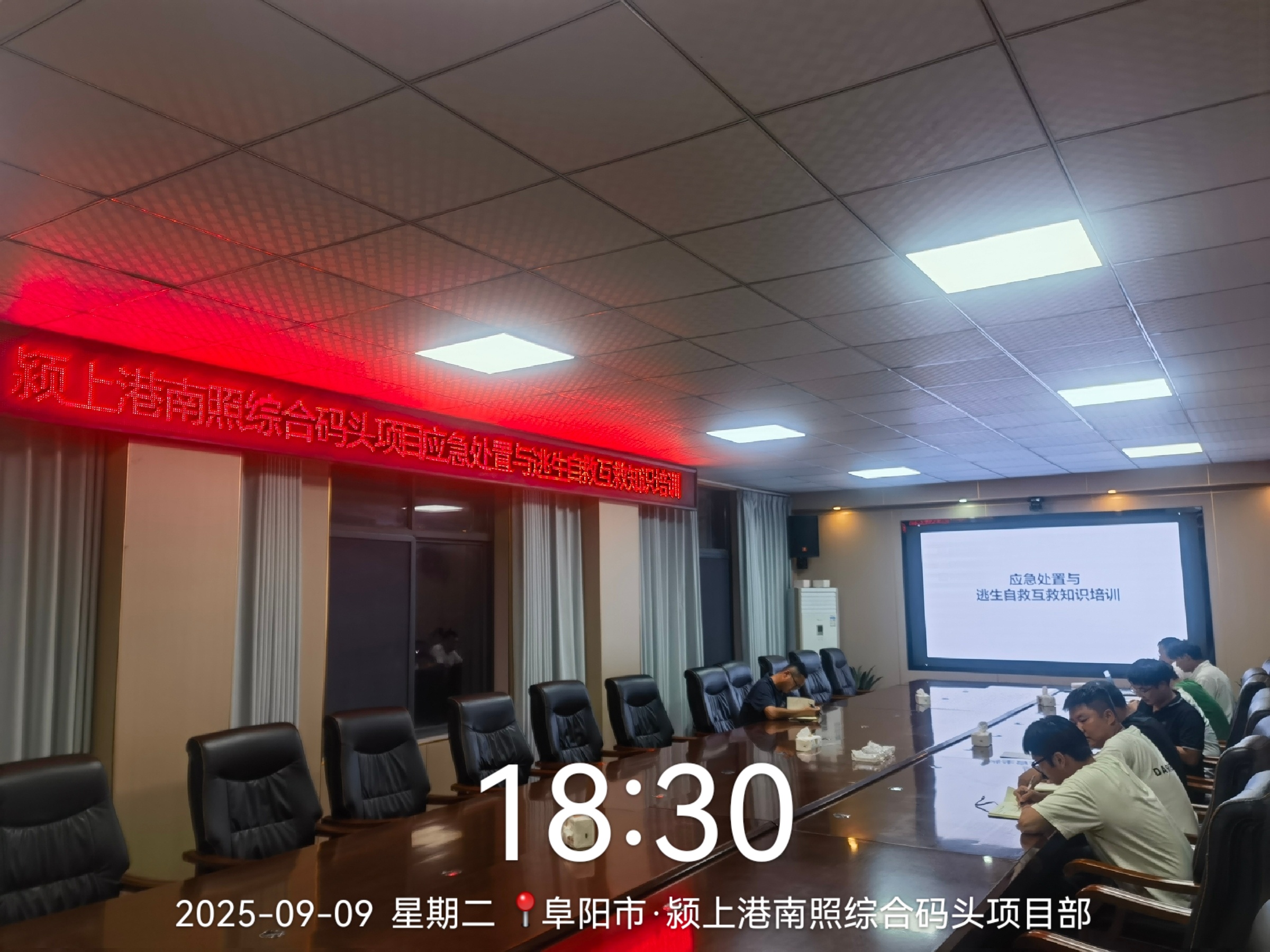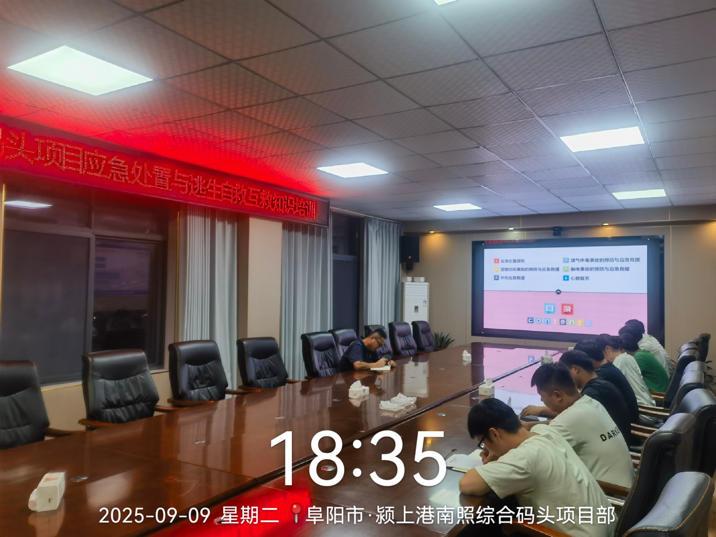 为进一步强化项目部职工安全意识,切实增强一线员工的应急反应与生存救援能力,9月9日晚,颍上港南照综合码头项目组织开展了“应急处置与逃生自救互救”专题知识培训。