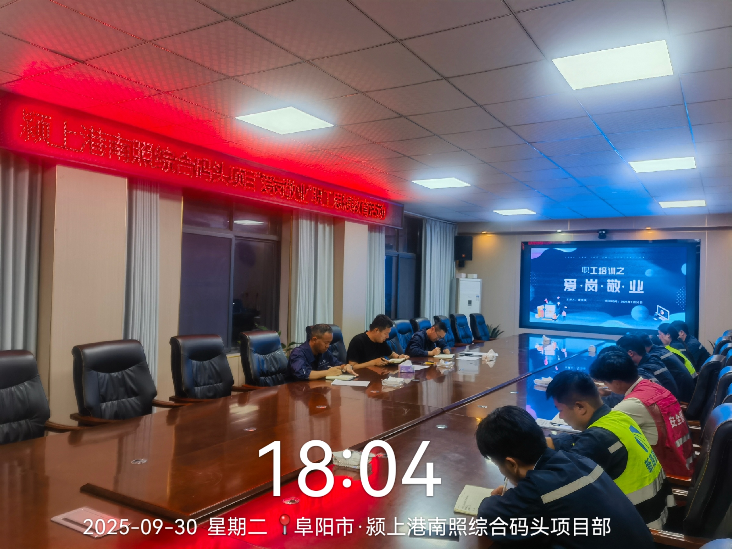 9月30日晚上,为深入弘扬爱岗敬业精神,强化团队凝聚力与责任感,颍上港南照综合码头项目特此开展“爱岗敬业”活动,筑牢职工思想根基。