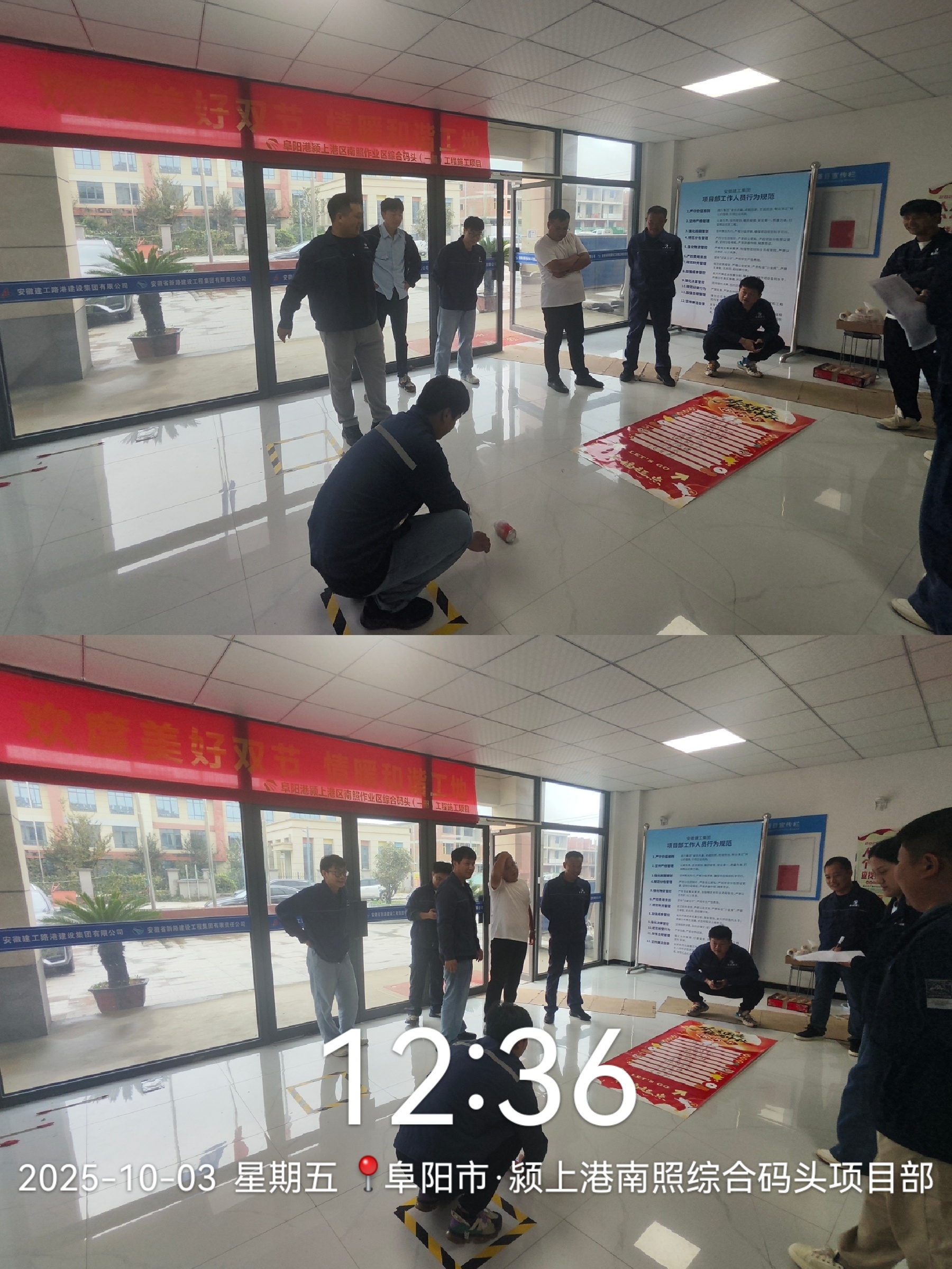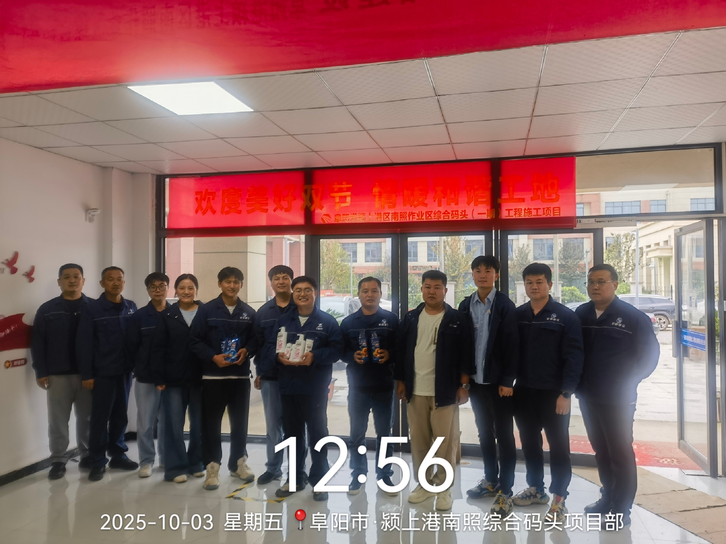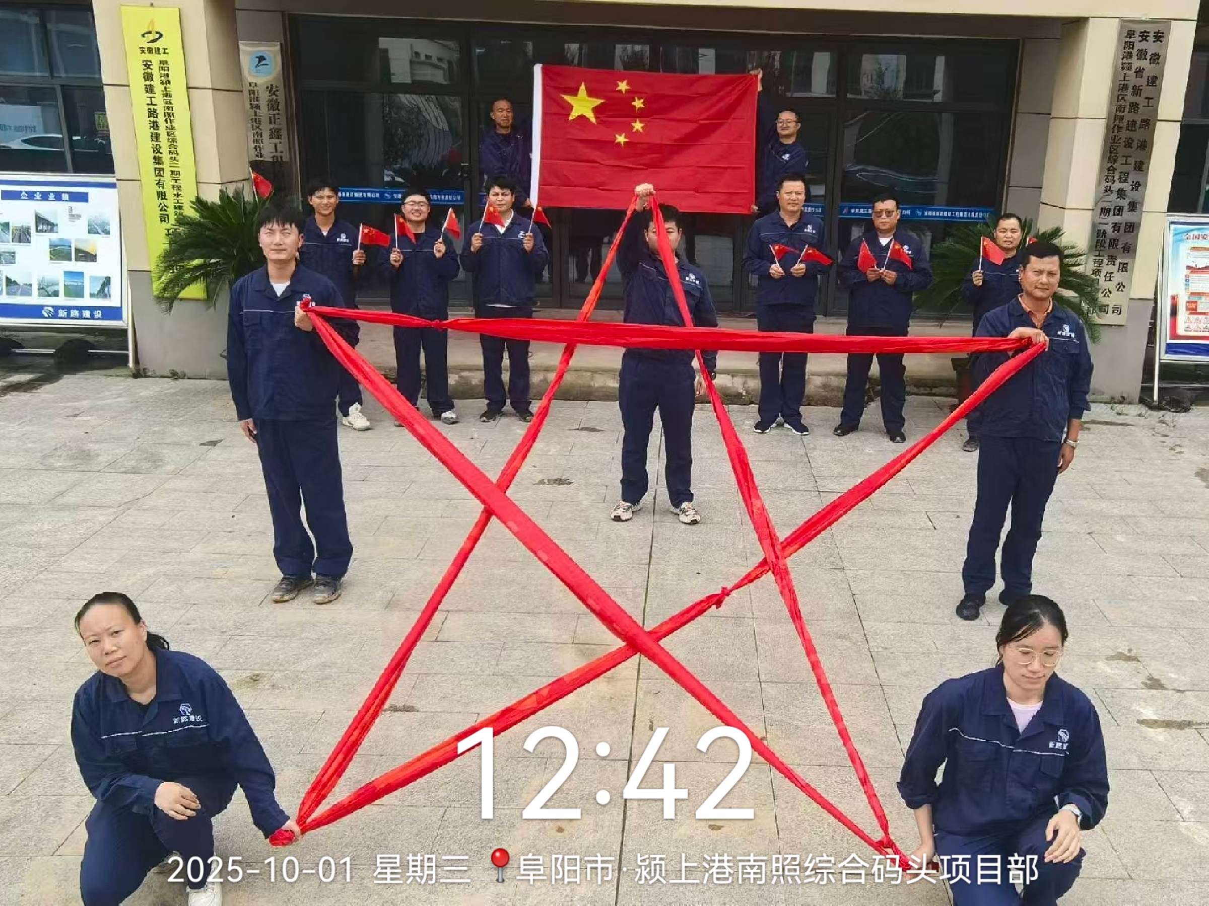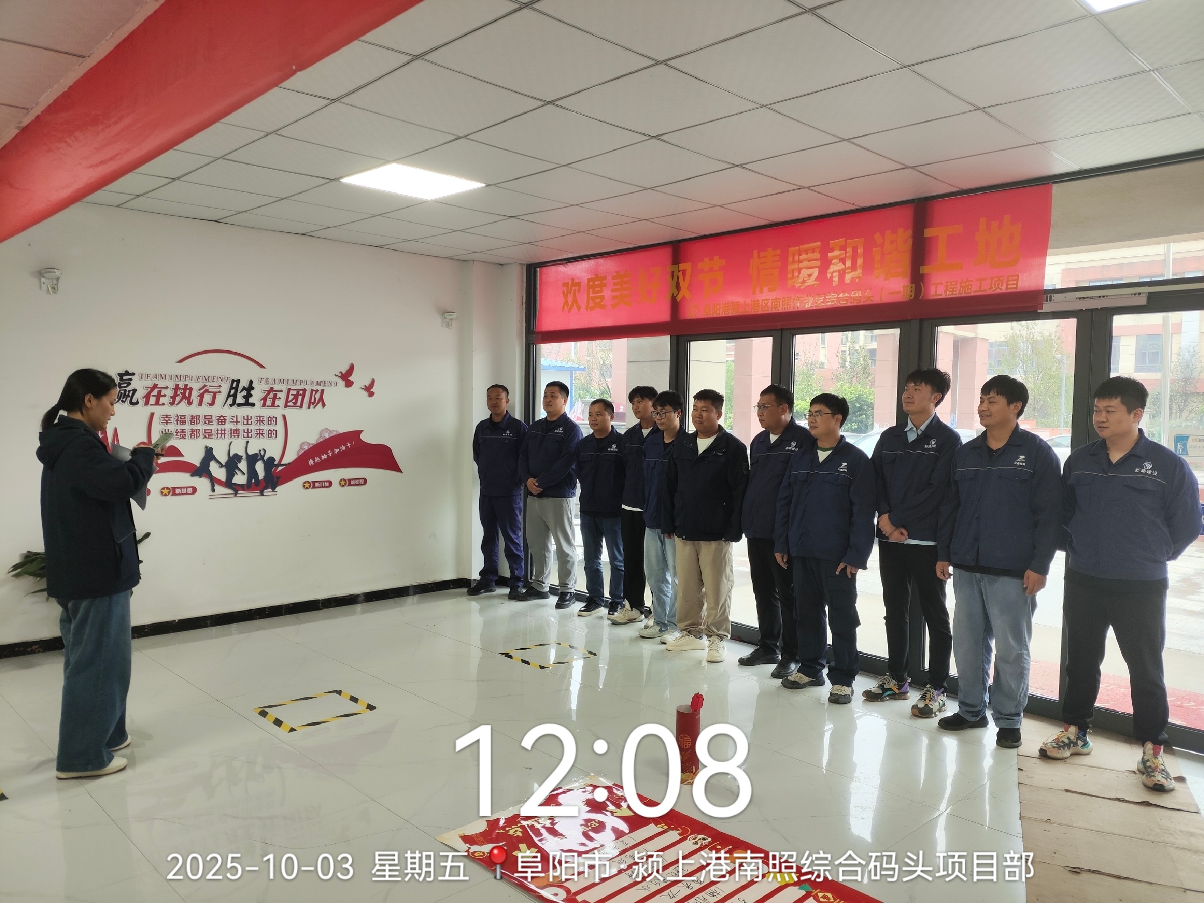 图为:颍上港南照综合码头项目部全体人员合拍祝福视频