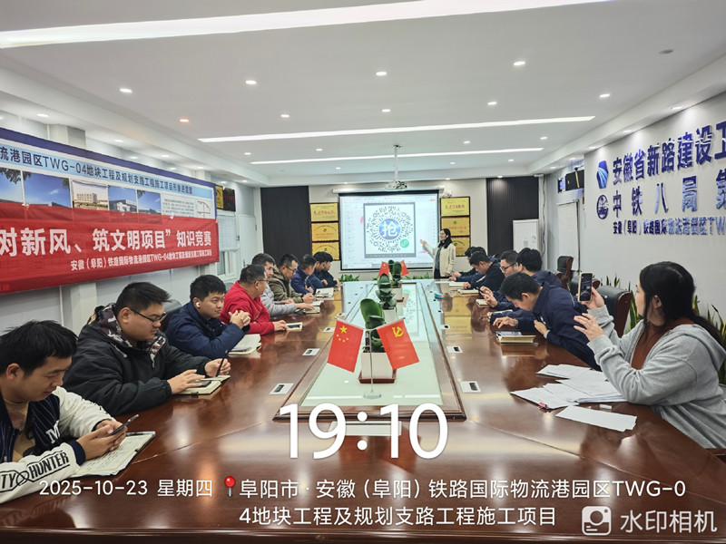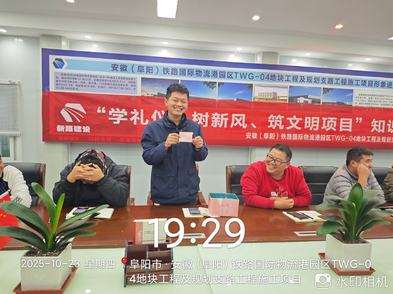 为进一步提升员工职业素养,增强团队协作力、丰富员工文化生活。10月23日,铁路物流港园区项目于项目部会议室开展了“学礼仪、树新风、筑文明项目”知识竞赛,项目部全体员工踊跃参与。