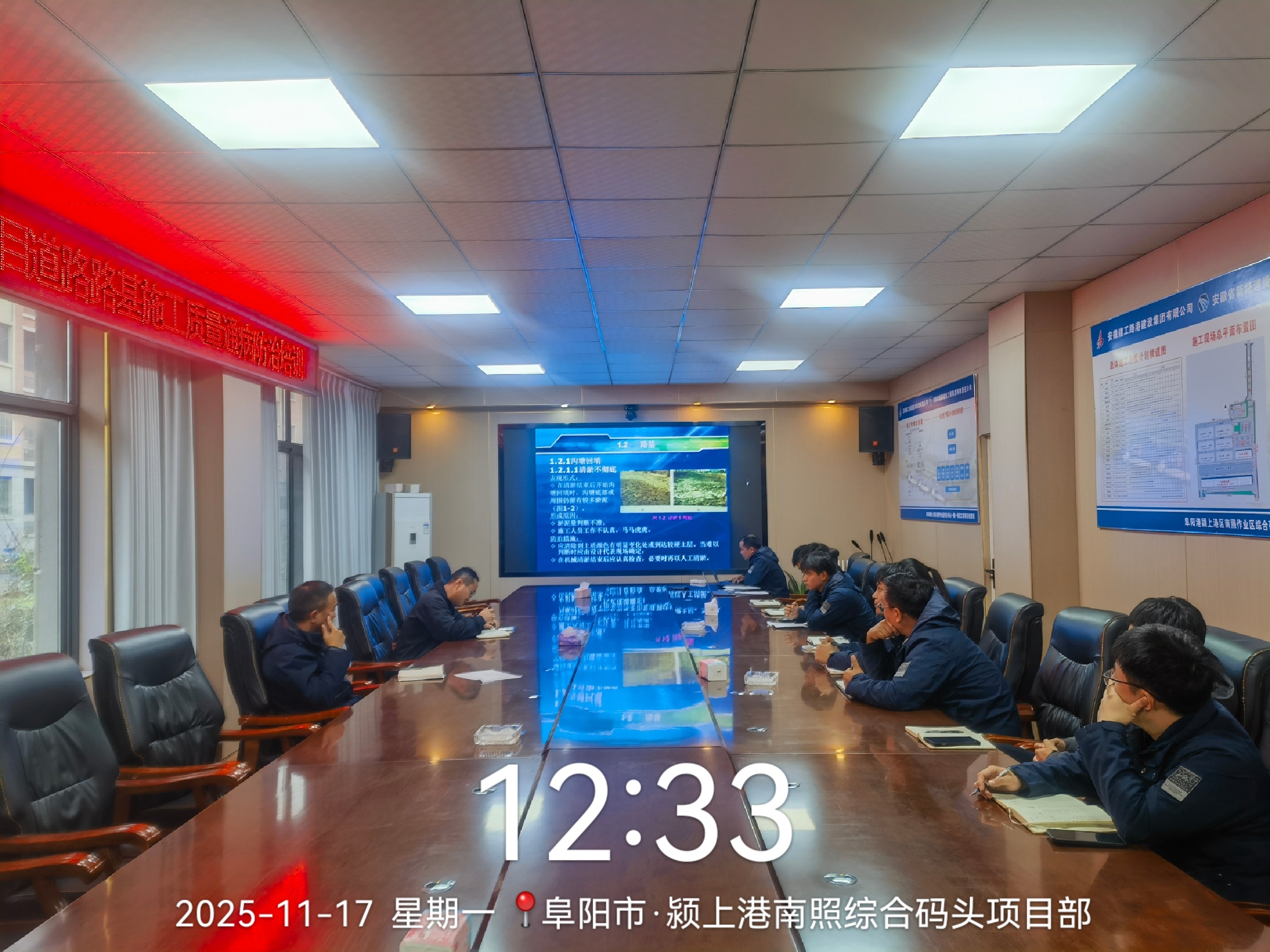 为全面提升现场质量管理水平,筑牢工程质量根基,11月17日中午,颍上港南照综合码头项目精心组织开展了“道路路基施工质量通病防治”专题培训,项目部管理人员及技术骨干均参加了此次学习。