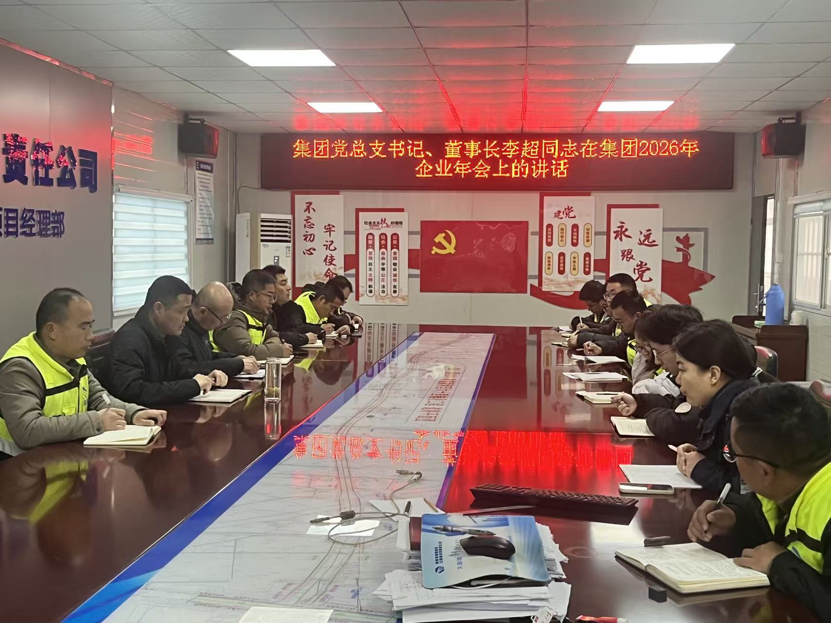 2026年2月28日,新路集团425项目部组织全体员工集中学习集团党总支书记、董事长李超同志在2026年企业年会上的重要讲话精神,全面领会“十五五”转型发展战略部署,凝聚奋进共识,激发实干担当。