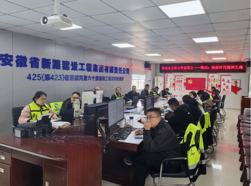 2026年3月16日,新路集团425省道颍河至六十里铺段工程项目经理部组织开展社会主义核心价值观之“敬业:铸就时代精神之魂”专题教育培训。项目经理王震主持活动,项目全体人员参加。