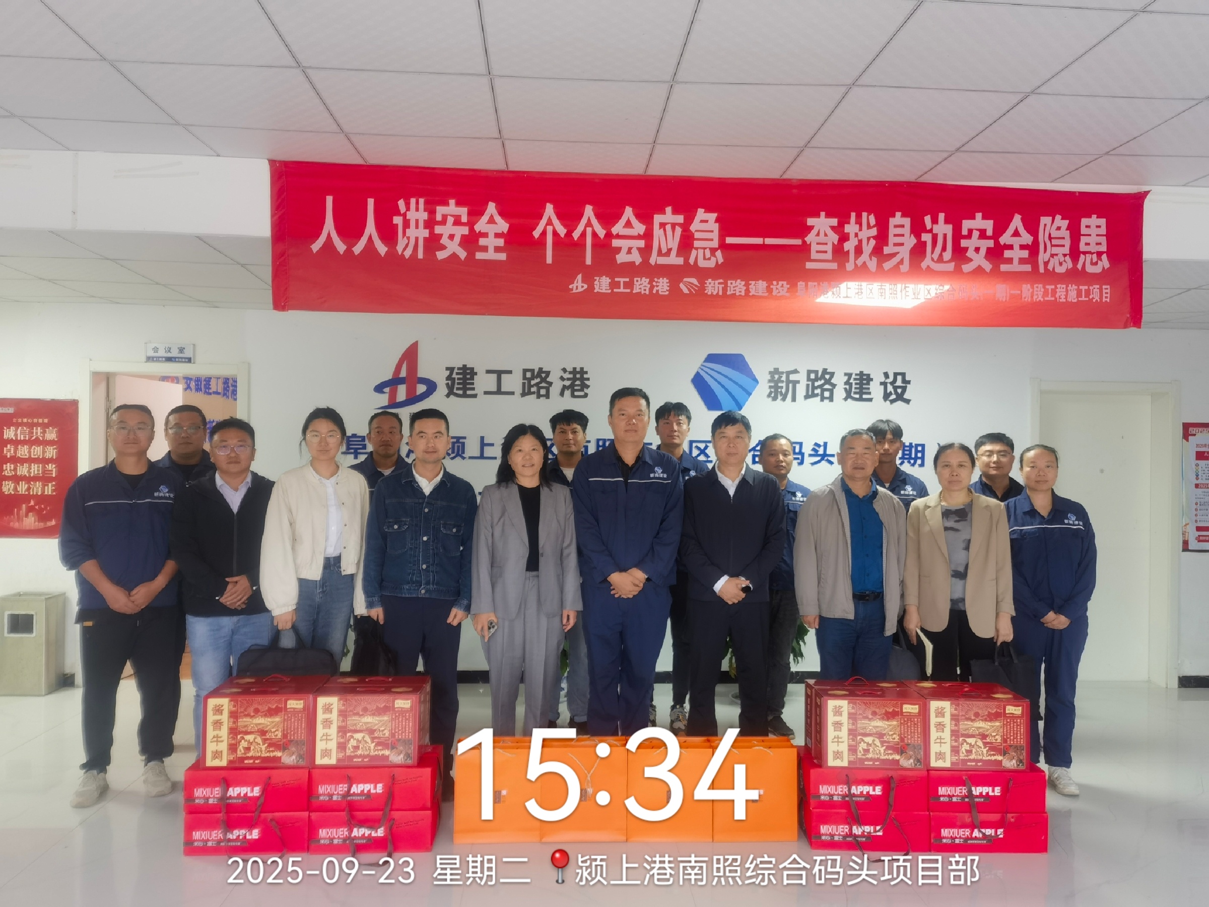 中秋、国庆双节将至,为深入贯彻落实中央八项规定精神,9月23日下午,市交投公司党委副书记、纪委书记季冬梅与新路集团公司董事长李超一行,赴颍上港南照码头项目一线开展节前廉政提醒谈话并慰问职工。