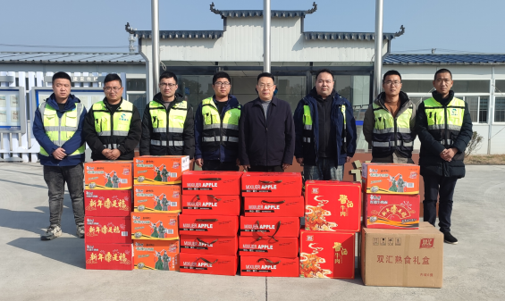 近日,新路集团党总支书记、董事长李超,党总支副书记、总经理崔传志等领导班子成员,分赴各施工项目,开展春节前走访慰问活动,为一线职工送去牛肉、火腿肠、方便面、苹果等新春慰问品和新春祝福。